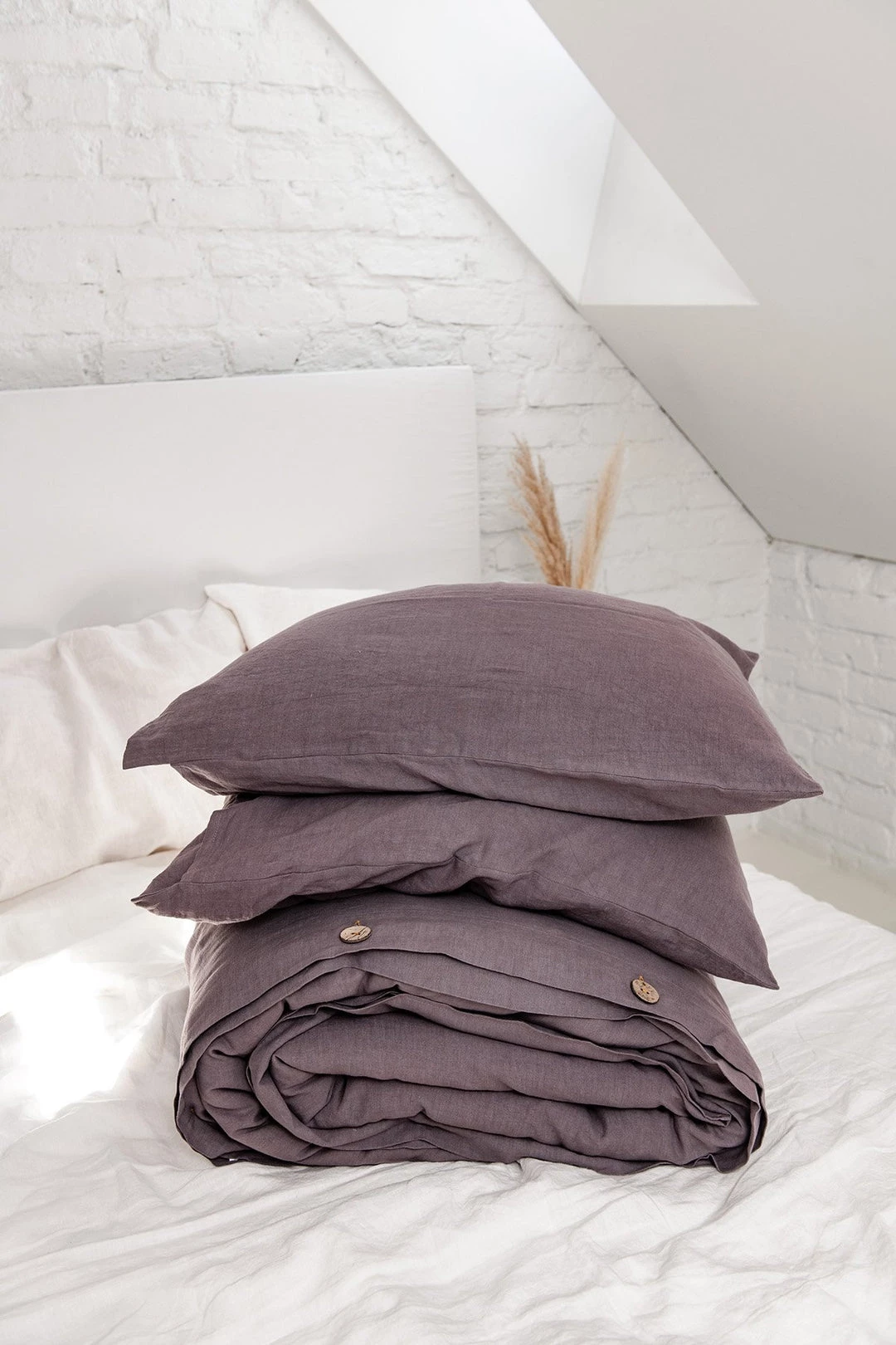 A duvet cover with matching pillowcases, available in a selection of sizes to choose from. The bedding is made from high-quality linen material that is OEKO-TEX certified fabric, absent of harmful chemicals. First of all, it is a vegan material as it is plant-based, so while you are having a stylish bed cover, sleep comfortably you are also being environmentally friendly