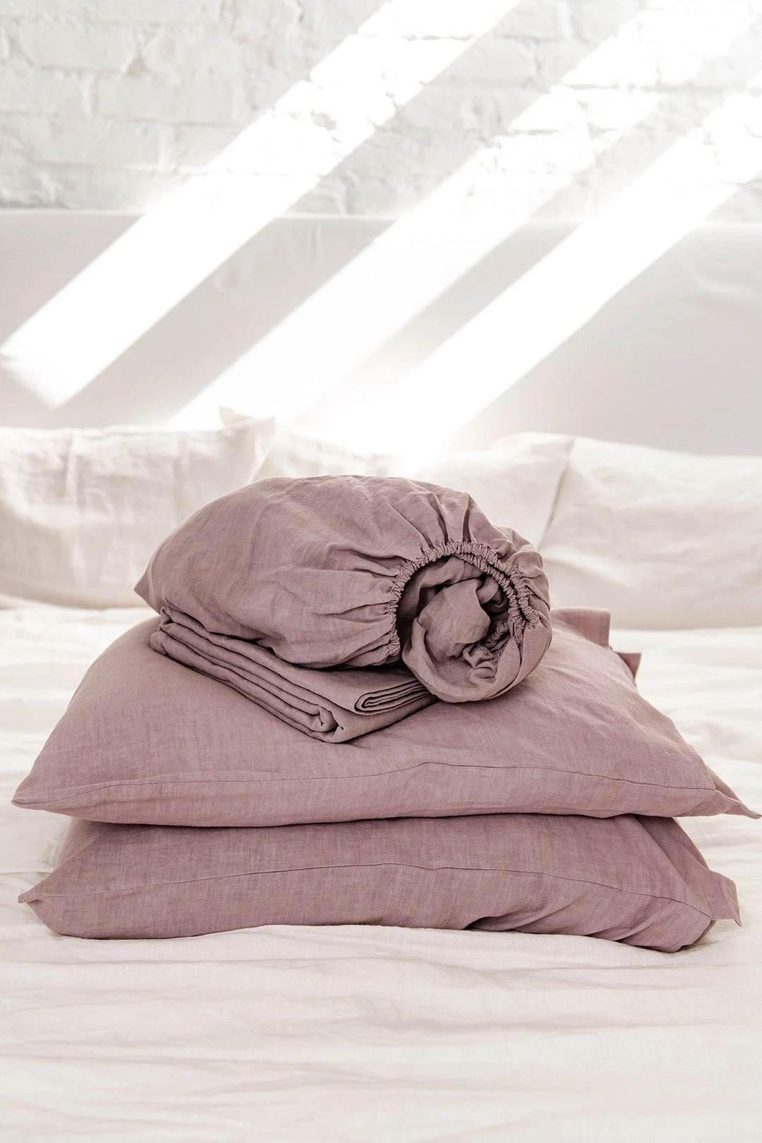 A full set that includes two different types of sheet, flat and fitted sheet, and two-piece of matching pillowcases. Linen sheets have become a really popular choice for bedding thanks to their unique texture, casual look, long lastingness, and comfort.