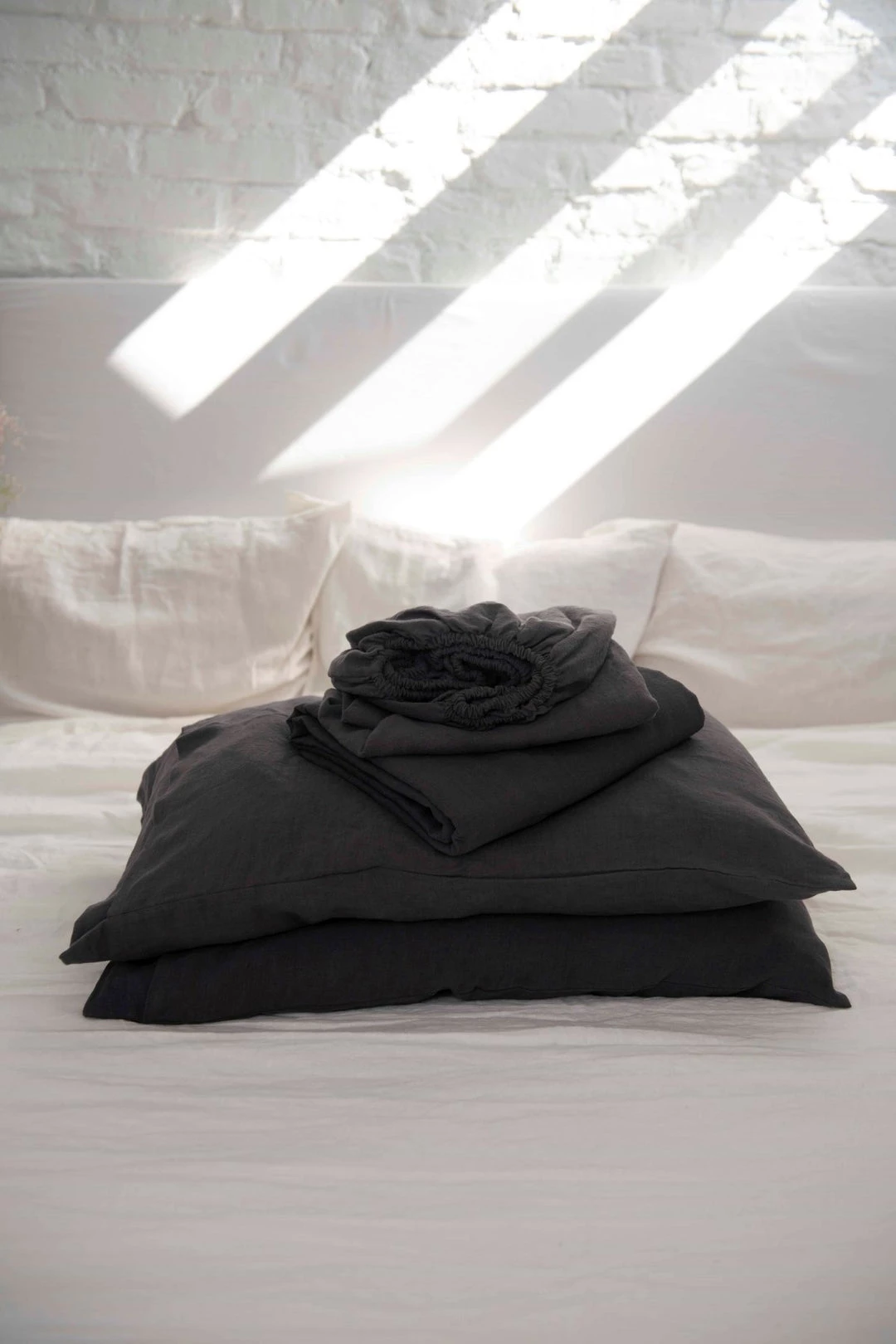 A full set that includes two different types of sheet, flat and fitted sheet, and two-piece of matching pillowcases. Linen sheets have become a really popular choice for bedding thanks to their unique texture, casual look, long lastingness, and comfort.