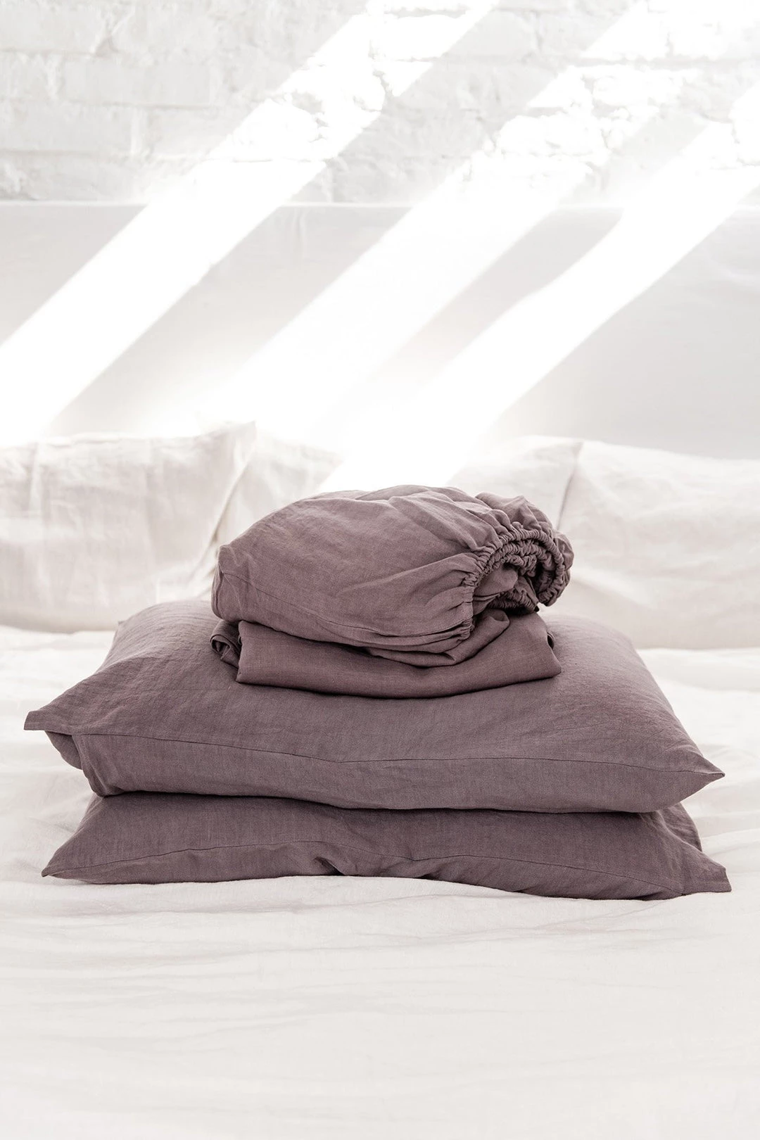 A full set that includes two different types of sheet, flat and fitted sheet, and two-piece of matching pillowcases. Linen sheets have become a really popular choice for bedding thanks to their unique texture, casual look, long lastingness, and comfort.