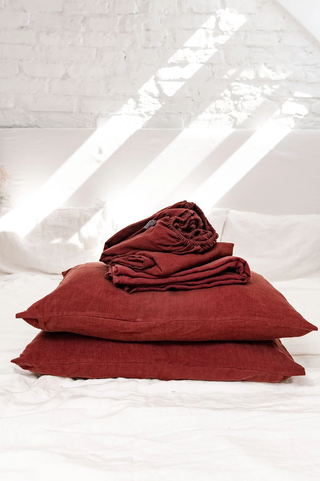 A full set that includes two different types of sheet, flat and fitted sheet, and two-piece of matching pillowcases. Linen sheets have become a really popular choice for bedding thanks to their unique texture, casual look, long lastingness, and comfort.