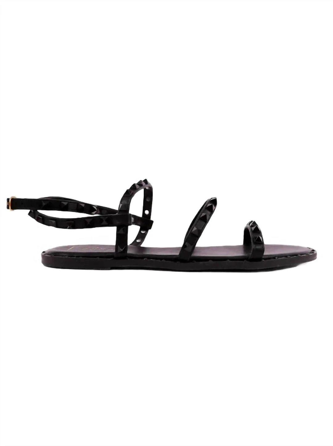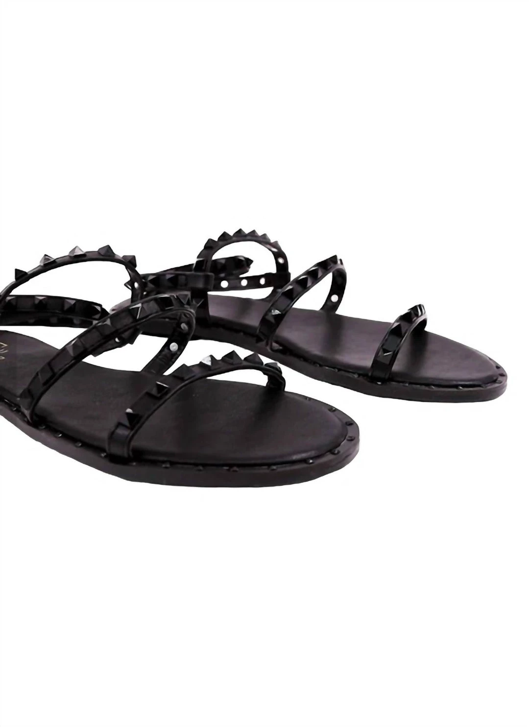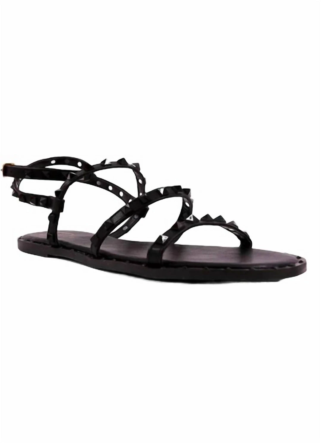 Gladiator sandal with a cool edge. These have been made from soft synthetic leather trimmed with metallic pyramid studs.