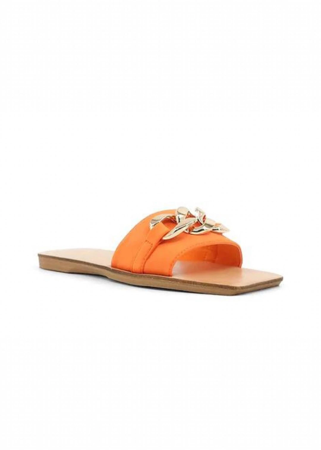 Our minimalistic DILIA flat sandals features a single strap topped with a lightweight chain and eye-catching ’90s-inspired squared toes. Let yours complement any warm-weather outfit.