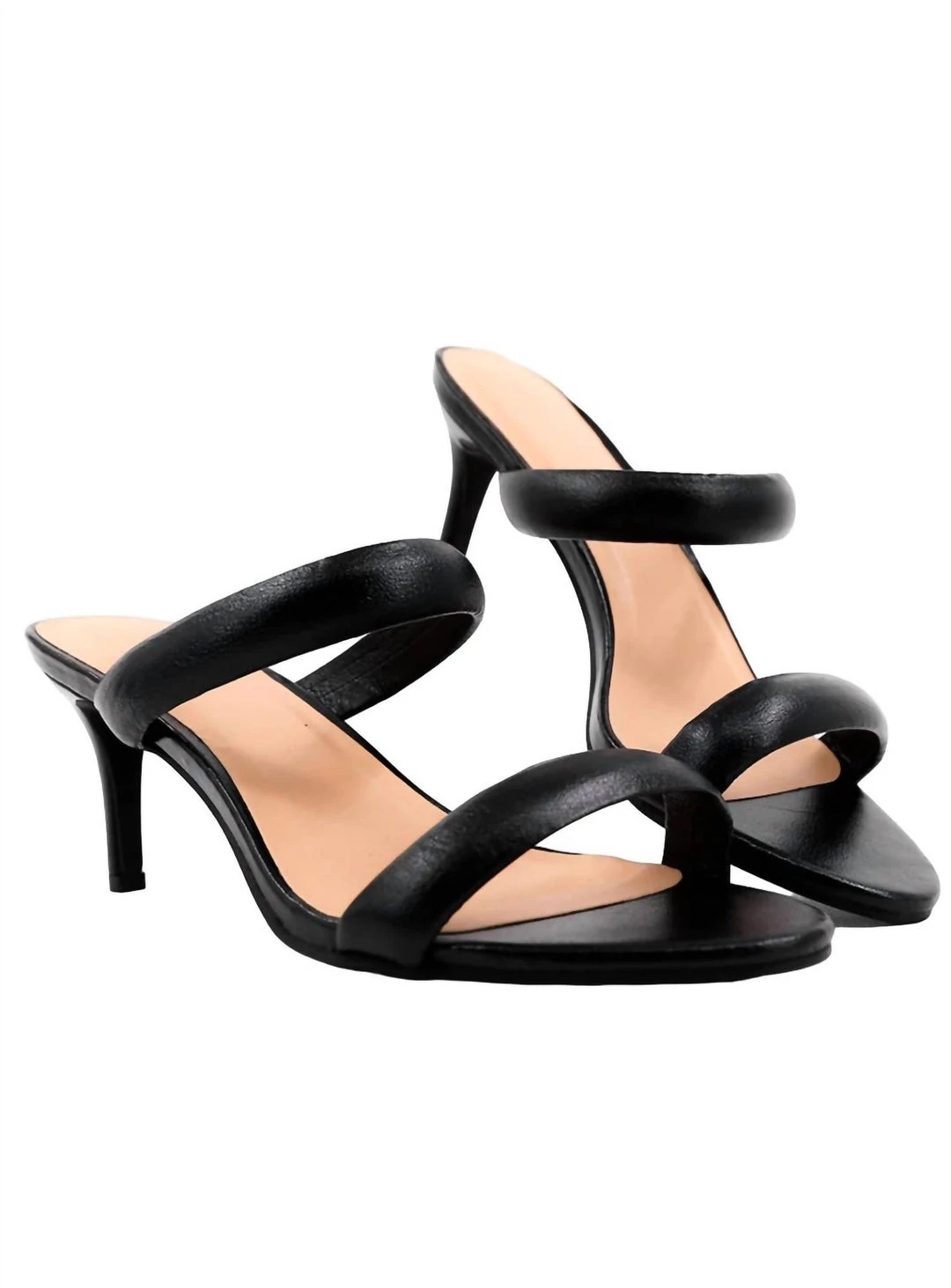 Feminine sandals with thin straps and a heel small, soft, thin straps.