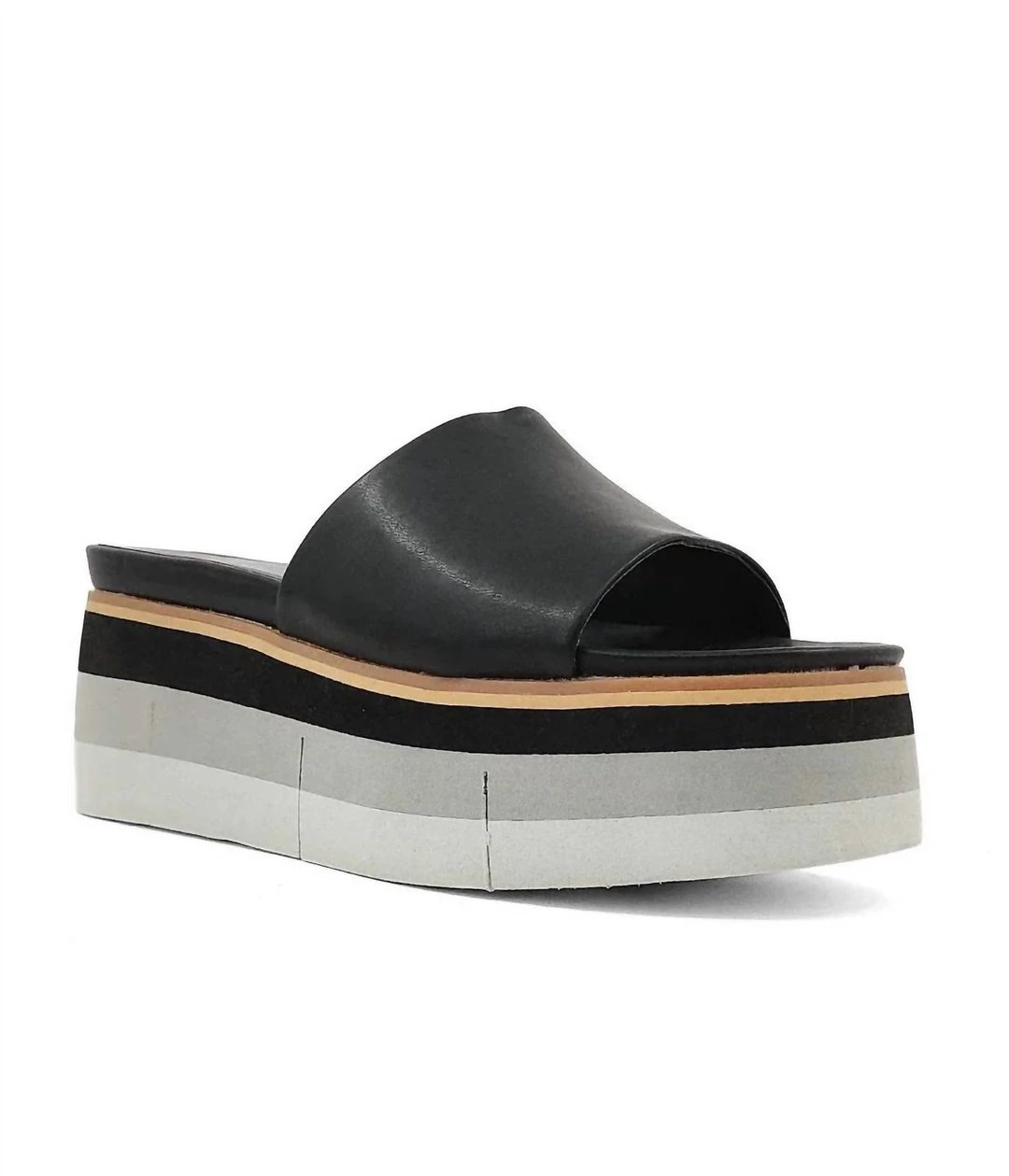 The Jade slide is crafted from super soft faux leather with a single wide strap upper and color-blocked platform soles.